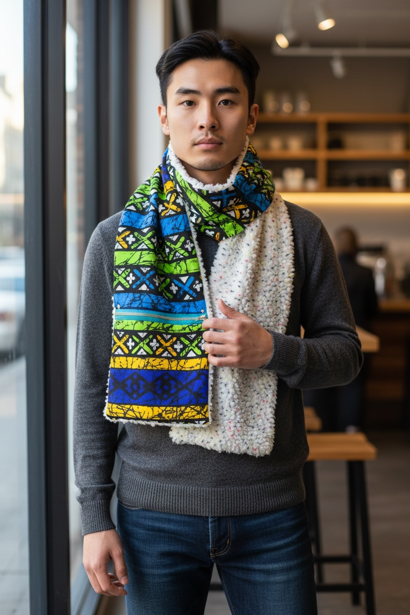 ボア使用のマフラーはメンズも使用できる長さでご用意しました。
