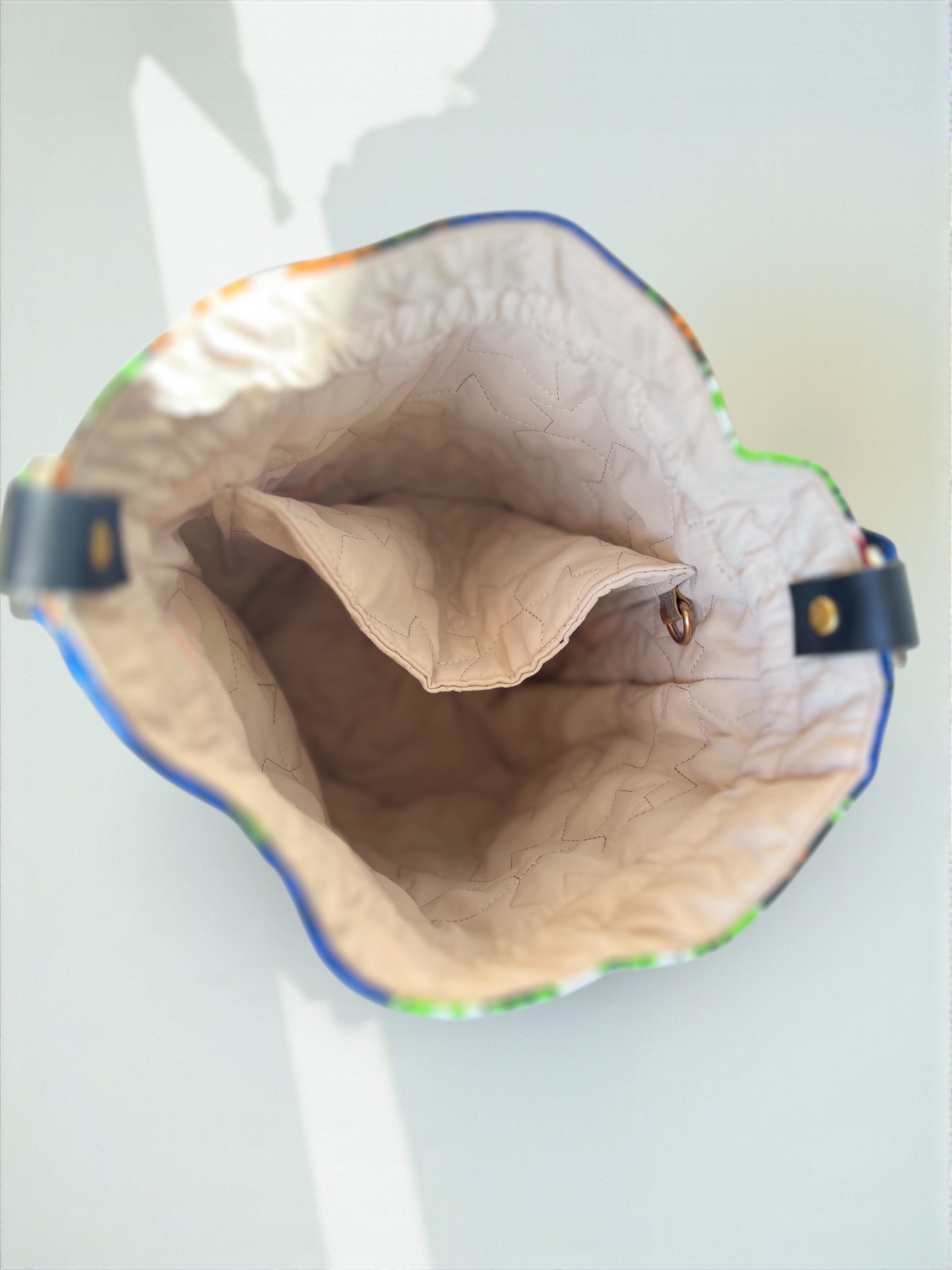 ・アフリカンファブリックは水通し後の生地を使用し色落ちも確認していますが、水濡れによる色落ちや色移りする恐れがあります。